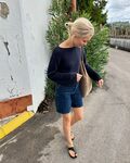 Den blå Sevilla Blouse er strikket i Palet fra Isager i farven Navy sammen med Trio 1 fra Isager i farven Navy.