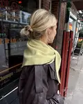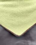 Det grøngule Uma Scarf er strikket i Cashmere Classic fra Cardiff i farverne Ito [721] og Cacao [643] i størrelsen stor.