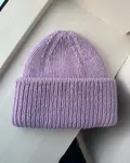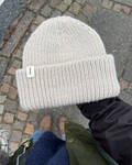 Weekend Hue strikkes i rib og har en dobbeltombukket kant. Der strikkes dobbeltstrik langs ombukskanterne for at sikre en blivende placering af disse.